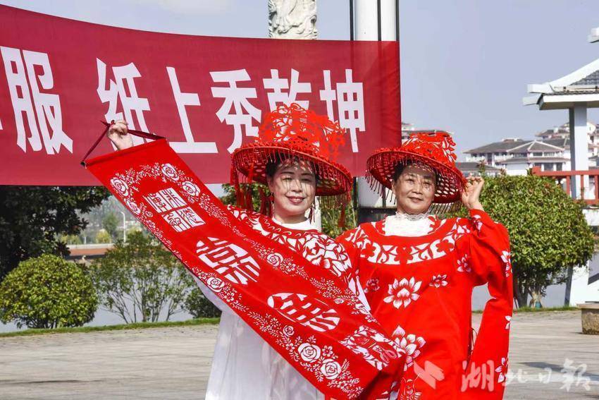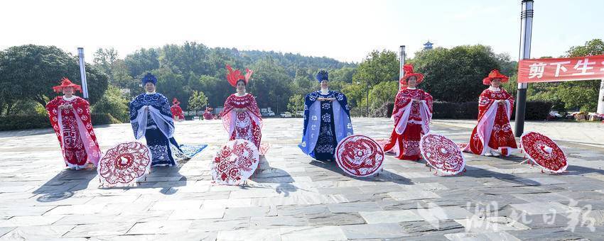 湖北日报客户端讯(通讯员雷平、庞建琴)10月22日上午,嘉鱼县八位非遗剪纸传承人身着剪纸华服,在雄风台以一场别开生面的“剪纸时装秀”,庆祝即将到来的重阳佳节。这场名为“剪下生华服,纸上秀乾坤——携手重阳,嘉鱼非遗剪纸展示”的活动,不仅让千年剪纸技艺“活”了起来,更以创新形式诠释了非遗传承的时代价值。
